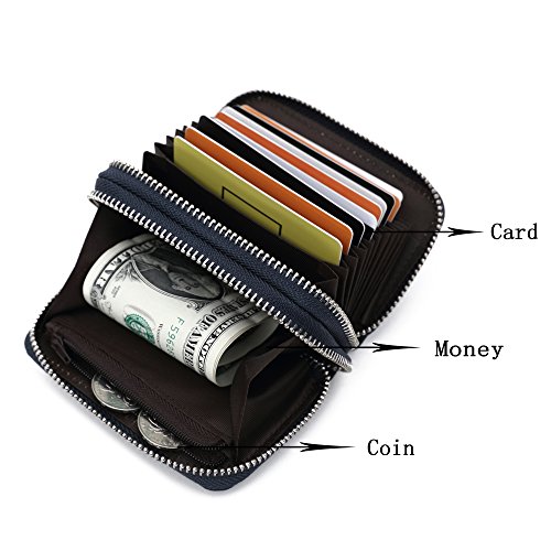 Credit card holder structure:11 credit card slots , a cash slots , a zipper coin pocket and a ID window. Each can fit 2 or more cards, Big currency pocket. Convenient feature for those who travel. 10 Year Warranty!