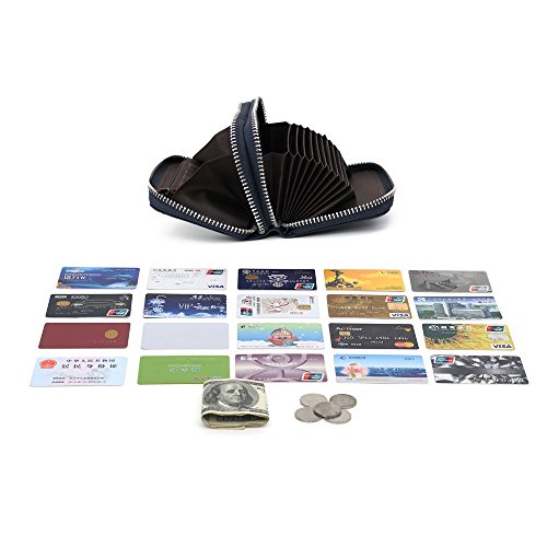 Comfortably holds 11-20 credit cards,some cashes,coins and ID card.