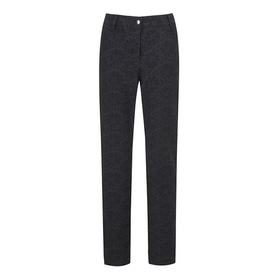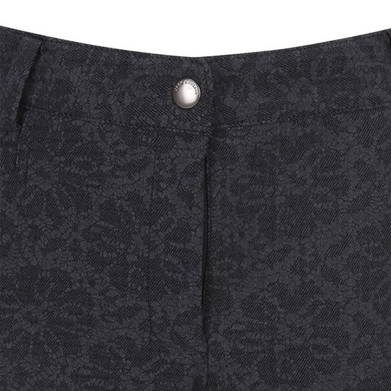 - 전판 다크한 컬러감의 플라워 나염을 매치한 여성 팬츠.