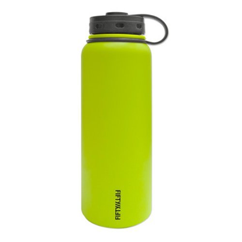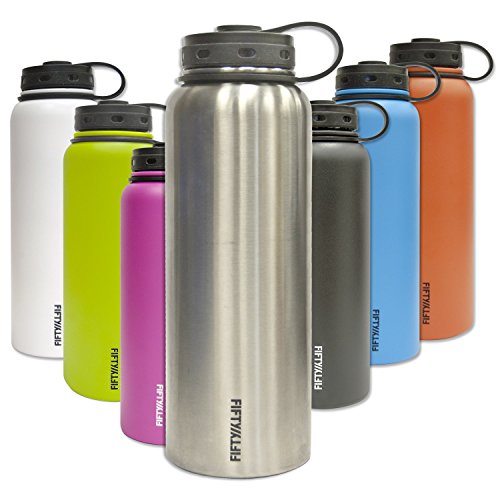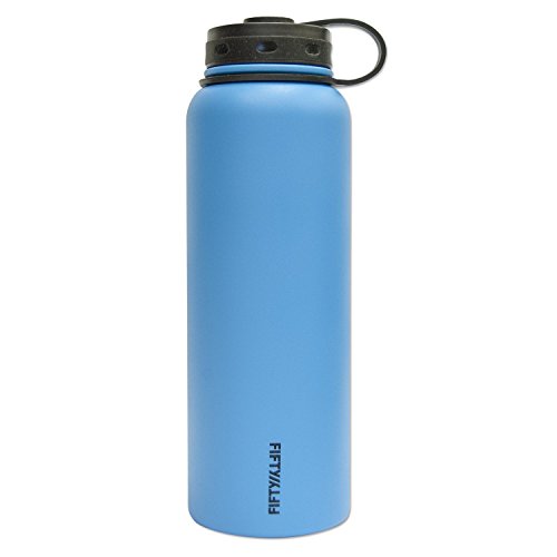 -. Title : Fifty/Fifty Black Vacuum-Insulated Stainless Steel Bottle with Wide Mouth - 40 oz. Capacity and Straw Cap