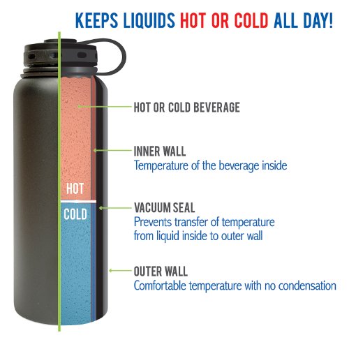-. Feature : 40 ounce wide mouth style / High quality vacuum insulation keeps liquids hot or cold for hours / Double-Wall technology prevents condensation and keeps outside of bottle at a comfortable temperature