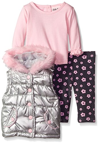 -. Title : Little Lass Baby Girls' 3 Piece Puffy Vest Set Fur Trim Hood