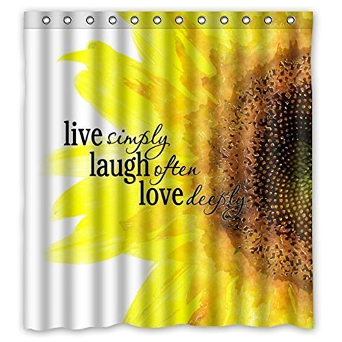 Watercolor Sunflower Art With Live Laugh Love Quotes Print Waterproof Bathroom Fabric Shower Curtain
