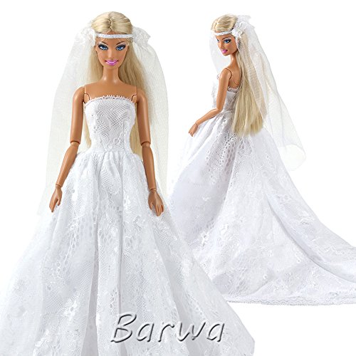 -. Title : Barwa Wedding Dress with Veil White P.R.Incess Evening Party Clothes Wears Dress Outfit Set for Barbie Doll