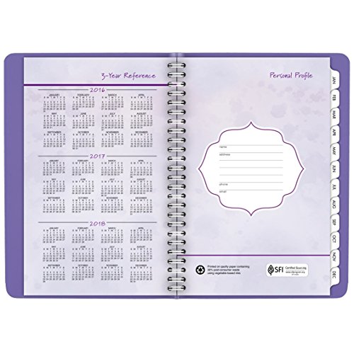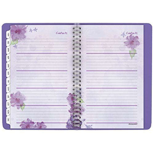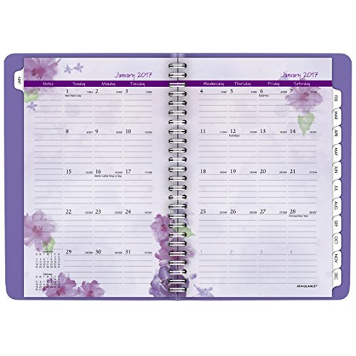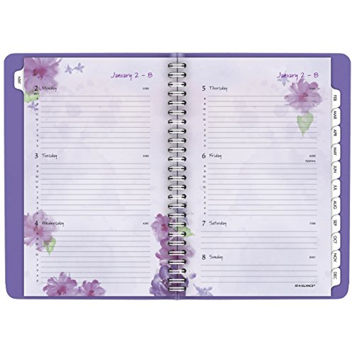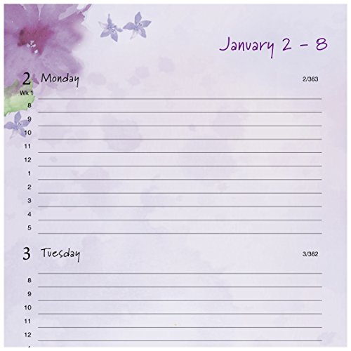 -. Feature : Features a one-piece suede-feel cover in lavender and pages with floral accents. Each quarter of the year is designated by one of four beautiful colors. Appointment book is small enough to tote in your bag or briefcase. Includes weekly and monthly view. / 13 month date range from January - January keeps your plans for the whole year in one convenient planner. Julian dates. Two pages per week spread provides plenty of writing space with 8:00 a.m. - 5:00 p.m. Monday - Friday appointments. / Tabbed monthly calendar pages feature two pages per month spread with ruled daily blocks and past and future months reference. Special pages include holiday listing, 3 year (past, current, and future) calendars, event calendar, contacts, and notes.