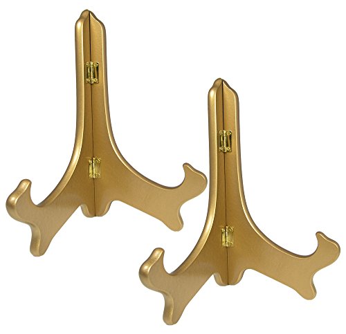 Gold Metallic Wood Easels Premium Quality Folding Display Plate Stand Holder - 9 Inch - Set of 2 Pieces