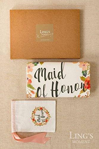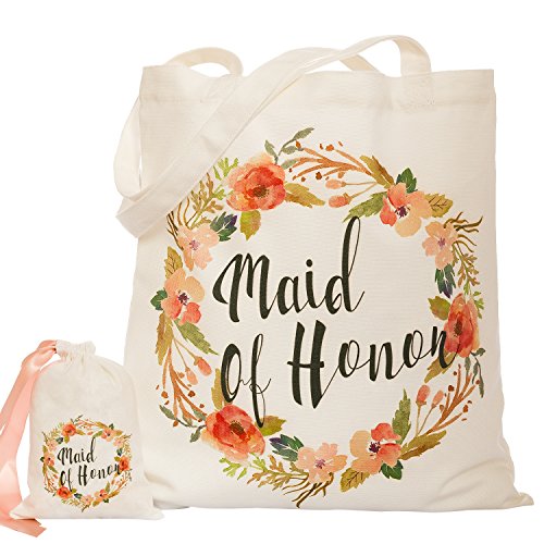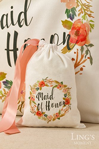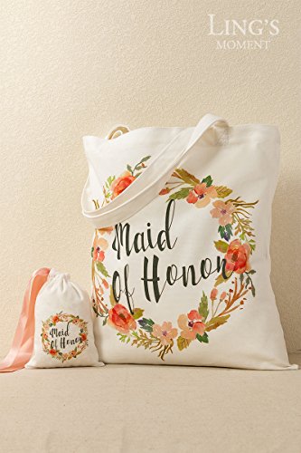 Ling's moment Romantic Bohemian Wedding Maid of Honor Bridesmaid Unique Gift Bag - 100% Cotton Canvas Tote Bag with Rustic Floral Design - Beautiful,, Reusable,Durable