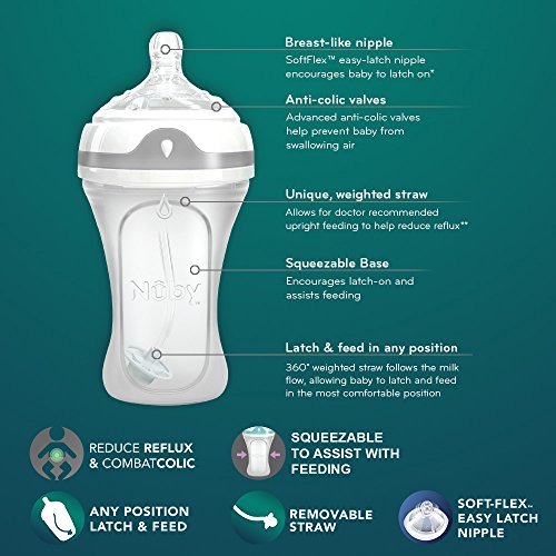 最新のデュアルベントアンチコリックバルブ任意の位置にラッチして給餌すると、360度加重ストローはミルクの流れに従います。胸のようなソフトフレックスニップル。しぼりやすい柔らかいシリコンボトルが新生児の餌を助けます。