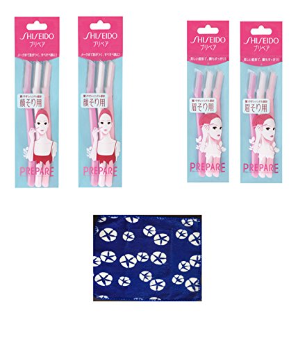 SHISEIDO 3 Piece Prepare Razor for Eyebrow, Large×2,SHISEIDO 3 Piece Prepare Facial Razor, Large×2,Japanese pattern mini towel(random).