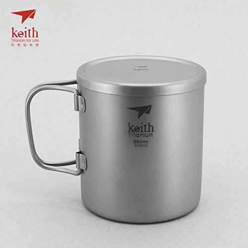 Keith Titanium 10.1 fl oz Double-Wall Mug with Folding Handle and Lid is made of premium pure titanium without lining and coating. It is tasteless, odorless, non-toxic and dishwasher safe. Originally designed for backpacking, camping and traveling, this titanium mug is also great for picnicking, emergency prepping and around the home, school and office.