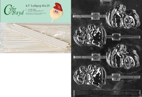 Cybrtrayd 00045St25-C032 Mr. and Mrs. Claus Lollies Christmas Chocolate/Candy Mold with 25 4.5-Inch Lollipop Sticks