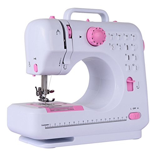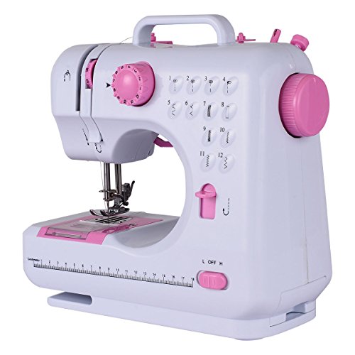 Costway Sewing Machine Household Multifunction Double Thread And Speed Free-Arm Crafting Mending Machine Pink White (12 Built-In Stitches)