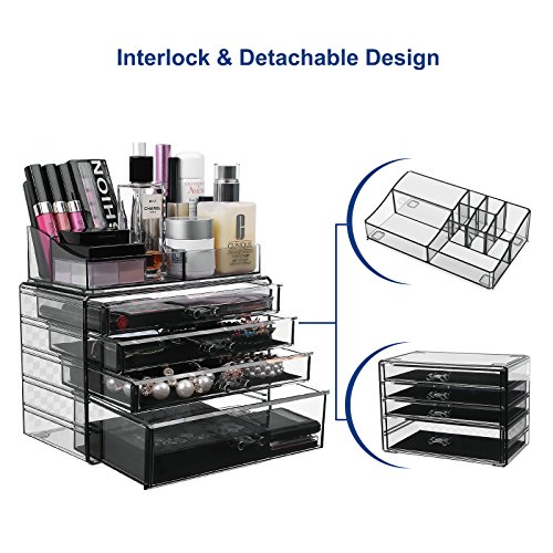 - STACKABLE: 2 pieces makeup organizer cases interlock securely with anti-slip mats, you can use them separately, together, or stack up for more drawers to extend capacity