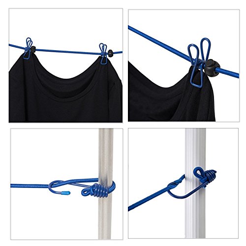 ☀STRETCHY & DURABLE - Portable clothesline are elastic and can be stretched to any length up to 140inches.The clothesline is made of stainless steel material that makes it strong, durable and rust retardant.It is ideal for home, indoor and outdoor use.