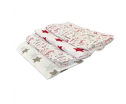 -. Feature : Multipurpose use as Burp Cloth, Tummy time, Play mat, Stroller Cover. Breathable: open weave allows for airflow / Comfy: the more you wash it, the softer it gets, Machine washable, gets softer with every wash. / 100 percent Cotton, P.R.Inted on pure white background., Machine Washable and gets softer with every wash, Size - 45 x 45", It includes four oversize swaddling blankets.