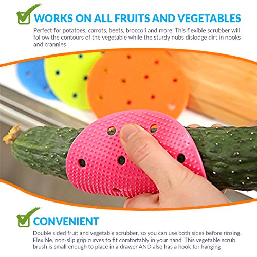 - • WORKS ON ALL FRUITS AND VEGETABLES: Perfect for potatoes, carrots, beets, broccoli and more. This flexible scrubber will follow the contours of the vegetable while the sturdy nubs dislodge dirt in nooks and crannies
