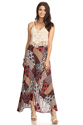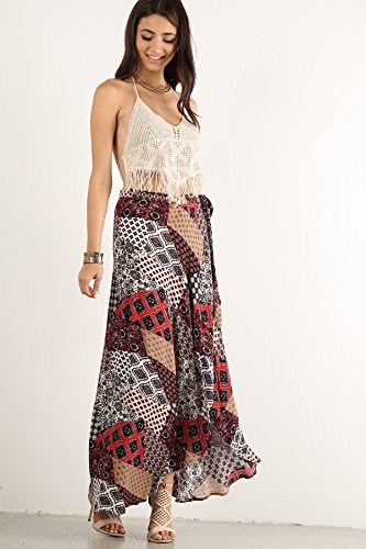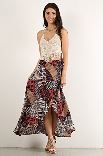 This artsy maxi wrap skirt features a high slit and a ribbon tie to make you feel like a princess with a bohemian flare. Take its irresistible impulse and dare to explore the world. DETAILS (Measured from Small): - Waist: 27" - Hip: 34" - Body Length: 25" - Color: Burgundy, Navy 0 |