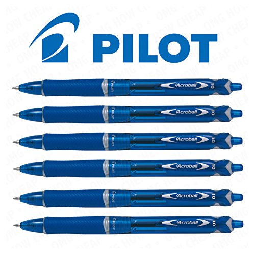 -. Feature : Pilot Acroball Kugelschreiber mit Druckmechanik, 6 Stück / Superschnelle trocknend & Wasserdichten Tinte / Blaue Tinte / Ergonomischer Griff aus Gummi für ein ermüdungsfreies Schreiben Erfahrung / 1,0 mm Spitze - schreibt eine 0,7 mm Strichstärke