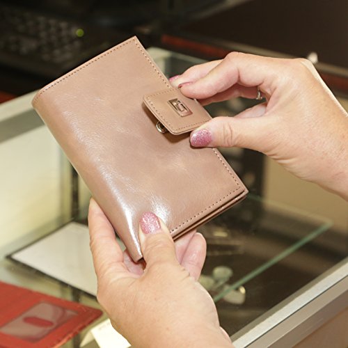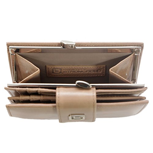 Binding : Apparel Product Description This stunning ladies' wallet has all the storage you would expect in a full size clutch. With 16 card slots, an ID window, 4 larger slots, full size billfold and kiss clasp coin storage, you will surely be able to fit everything you need. The high quality two tone leather is sure to be envied. Designed with top security in mind, you know you have the best protection in the industry when you buy an authentic ID Stronghold product. You can have all your store rewards cards with you when you need them. Carry your health card, insurance card, and auto club cards with you. No need to keep some cards at home; you'll have room for everything with this fashionable clutch. As with all our wallets at ID Stronghold, every slot, ID window, billfold, and compartment is individually shielded, so your information is protected even when your wallet is fully open. This is a feature not found in most other brands. Each wallet comes with its own original ID Stronghold gift box so you can buy one for yourself, and one for a friend. Identity Stronghold started the RFID protection industry in 2006. We continue to lead this industry by creatively applying shielding technology to a variety of products that block radio waves and thereby prevent thieves from remotely accessing your private information (including your complete credit and debit account numbers). Beware of imitations that aren't made by Identity Stronghold. We have tested many of those knock-offs in-house, including some of those hard metal wallets. Many do not shield effectively. In fact, some knock-offs actually include documentation admitting they are not 100% effective. You can be sure you are protected when you use Identity Stronghold RFID blocking products. Some older building access cards that operate at 125Khz may not be totally blocked by our Secure Wallets. 0