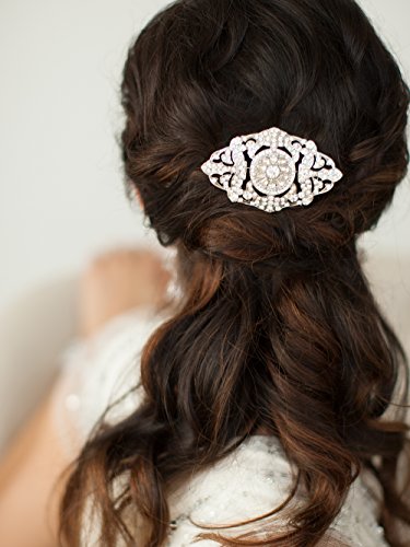 Product Description Our Glamorous Art Deco Crystal Wedding Comb is a true Work of Art at an irresistible wholesale price! When a bride slips this 3 3/8" w x 2 1/4" w Bridal Comb into her hair, the sultry "Glam" of Old Hollywood lights up the room. 0