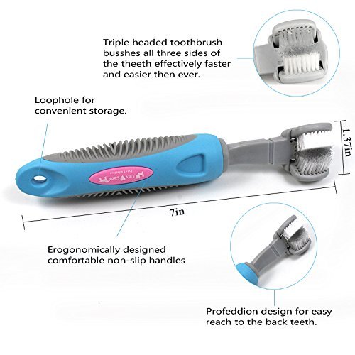 -. Binding : Misc. -. Brand : Pety Pet -. Color : Blue -. EAN : 0798524012479 -. Feature : TRIPLE HEAD DESIGN: With three cleaning heads the Craft and Canine Toothbrush will ensure your dog's teeth are cleaned effectively with minimum strle or inconvenience. The sleek, simple style of Craft and Canine's toothbrush prevents unnecessary damage by reducing non-essential components. / EASY TO USE: Using a Craft and Canine toothbrush is as simple as using your own toothbrush. Be sure to reward your pet with compliant behaviour to ensure a pleasant cleaning experience for both pet and parent. The triple head design contributes to less brush strokes, making for toothbrush efficient in its purpose. / PREVENT BAD BREATHE: Using proactive dental care on your pet will ensure a healthy and happy lifestyle. It will remove bad breathe from your pets mouth keeping gum disease non-existent. / BENEFITS OF BRUSHING YOUR DOGS TEETH: Prevent the build-up of plaque, tartar, and calculus. Prevent gingivitis and gum disease. -. Label : Pety Pet -. Manufacturer : Pety Pet -. PackageQuantity : 1 -. ProductGroup : Pet Products -. ProductTypeName : PET_SUPPLIES -. Publisher : Pety Pet -. Size : Small -. Studio : Pety Pet -. Title : Pety Pet Triple Head Toothbrush For Large Dogs Dog Toothbrush Large Breed -. UPC : 798524012479