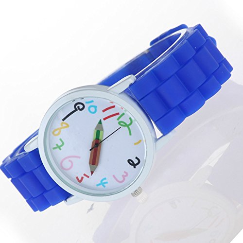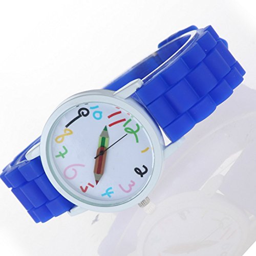 Happy Cherry Kids Candy Colors Quartz Wrist Watch with Rubber Band Sports Watch for Students Navy-blue