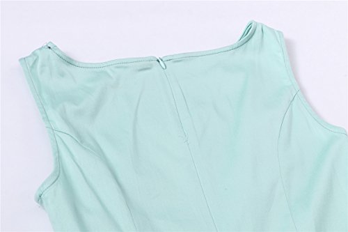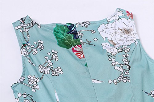 V Fashion Women's Boat Neck Sleeveless Cocktail Dress Floral Print Party Dress 50s Style Dresses with Belt,Light Green,Medium