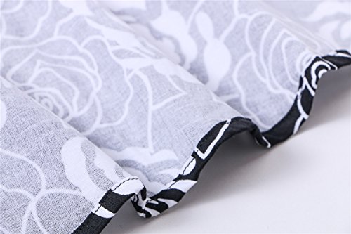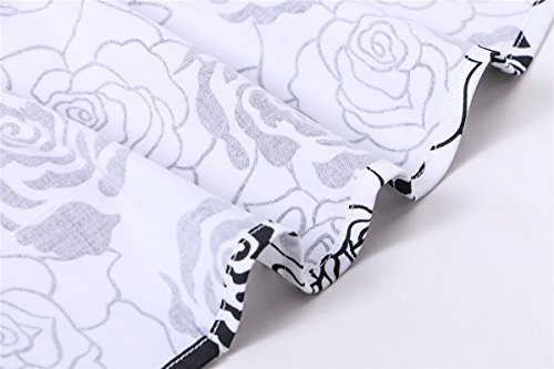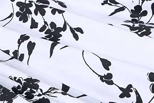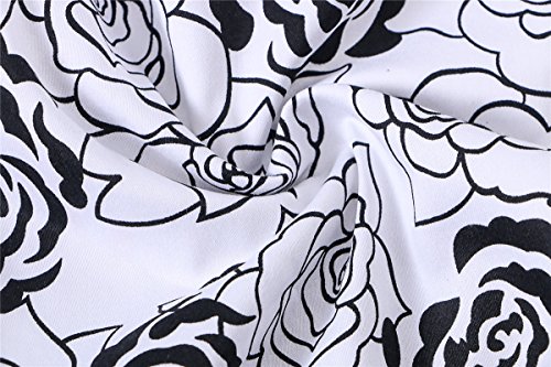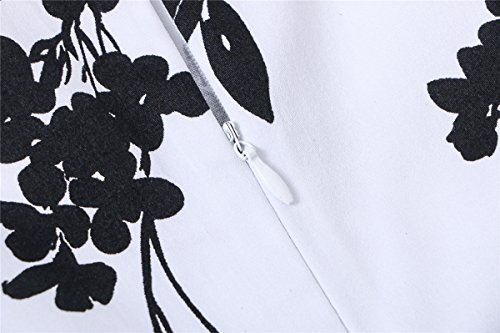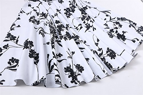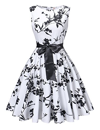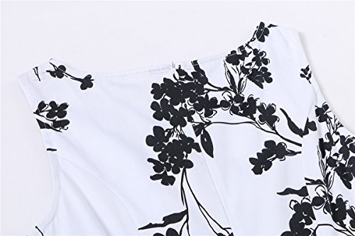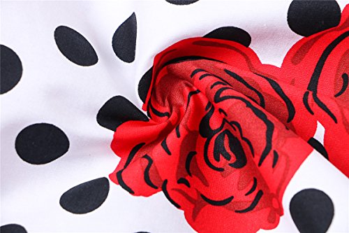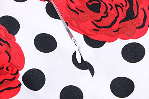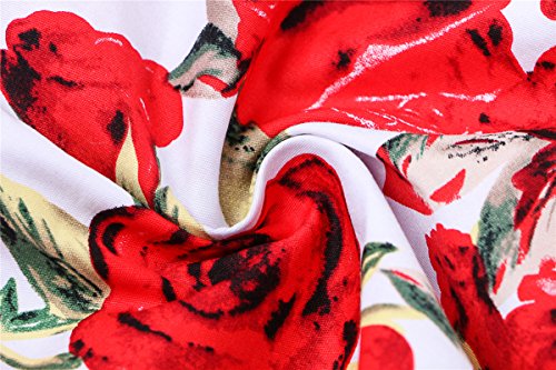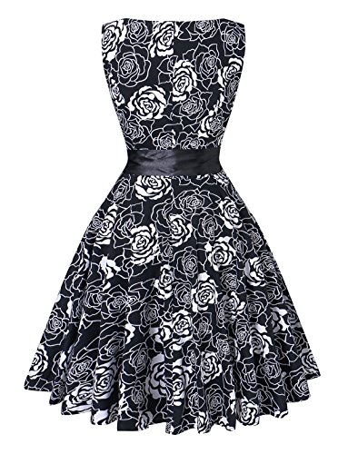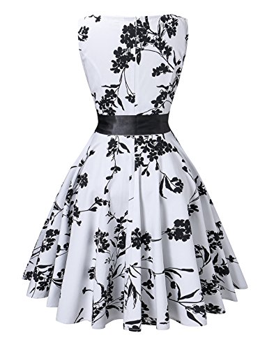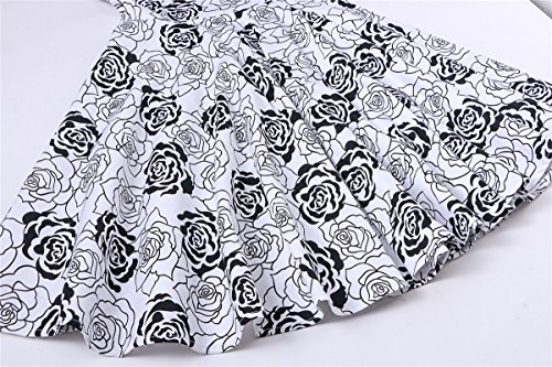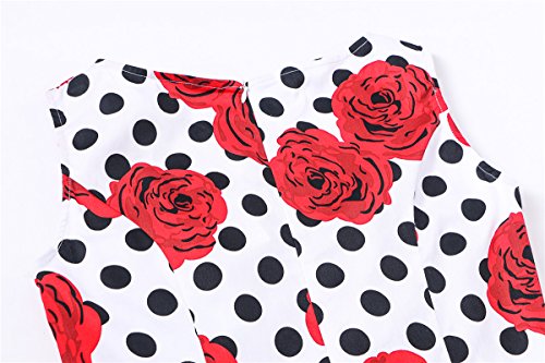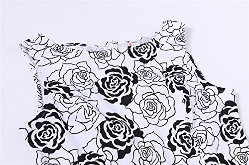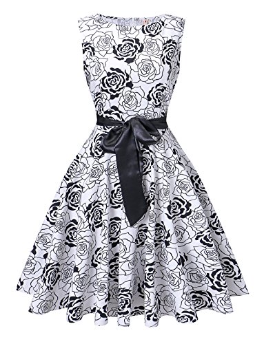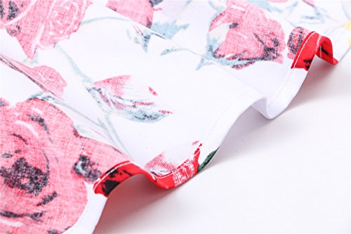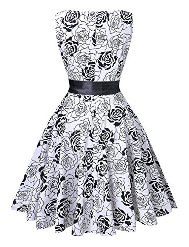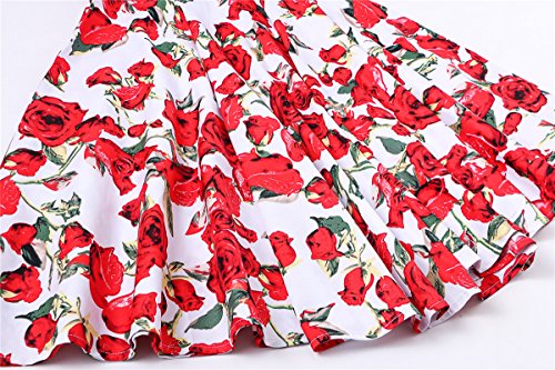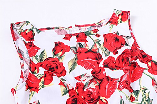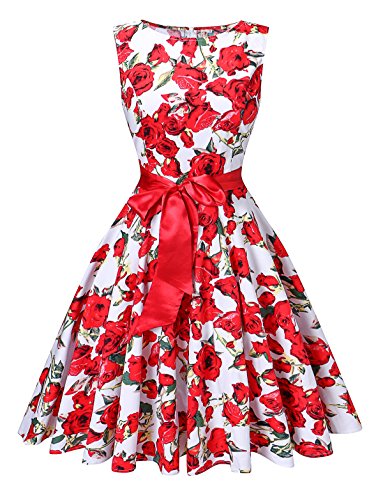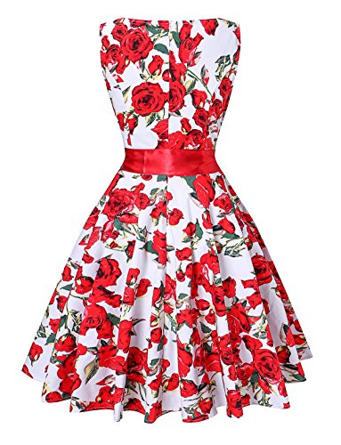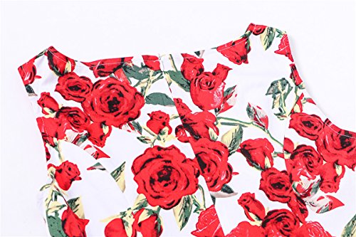 V Fashion Women's Boat Neck Sleeveless Cocktail Dress Floral Print Party Dress 50s Style Dresses with Belt,White Rose,Medium