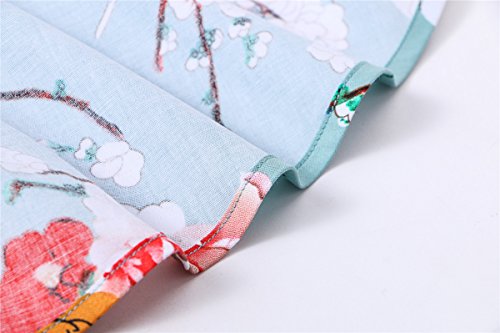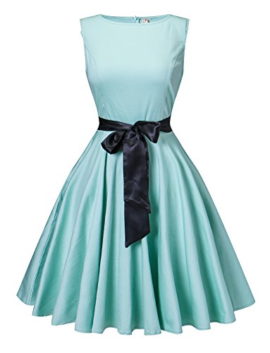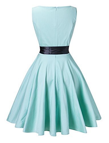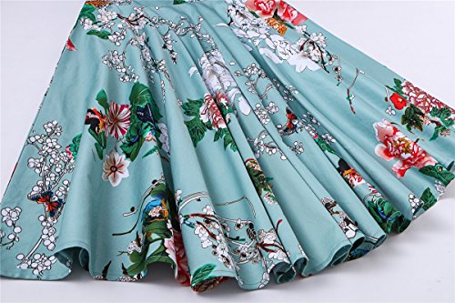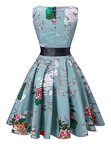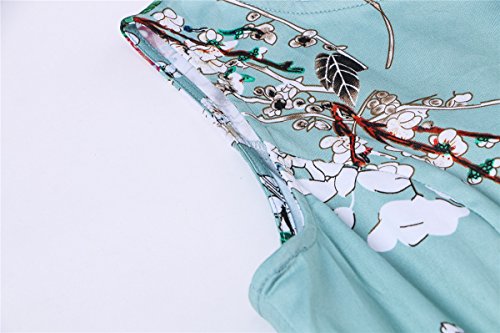 V Fashion Women's Boat Neck Sleeveless Cocktail Dress Floral Print Party Dress 50s Style Dresses with Belt,Light Green,Small