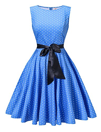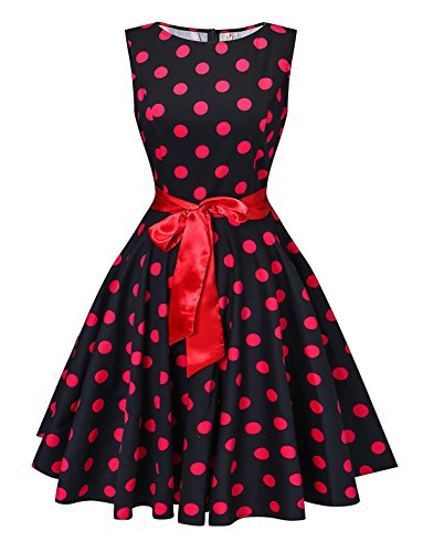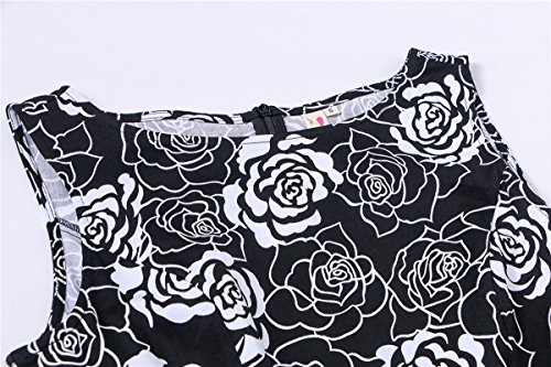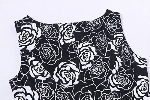V Fashion Women's Vintage Rockabilly Dress Floral Sleeveless Floral Print Dress with Belt