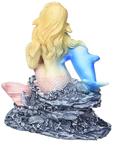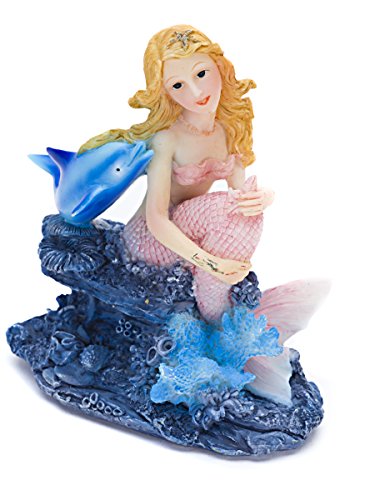 -. Binding : Misc. -. Brand : Penn-Plax -. Feature : Made of high-quality resin / Beautiful mermaid sitting on a coral reef / Features a blue dolphin friend / Non-toxic; suitable for both fresh and salt water aquariums / Dimensions: 4L x 2W x 4H in. -. Label : Penn Plax Inc -. Manufacturer : Penn Plax Inc -. MPN : RR1003 -. PackageQuantity : 1 -. PartNumber : RR1003 -. ProductGroup : Pet Products -. ProductTypeName : PET_SUPPLIES -. Publisher : Penn Plax Inc -. Studio : Penn Plax Inc -. Title : Penn Plax Mermaid Aquarium Ornament