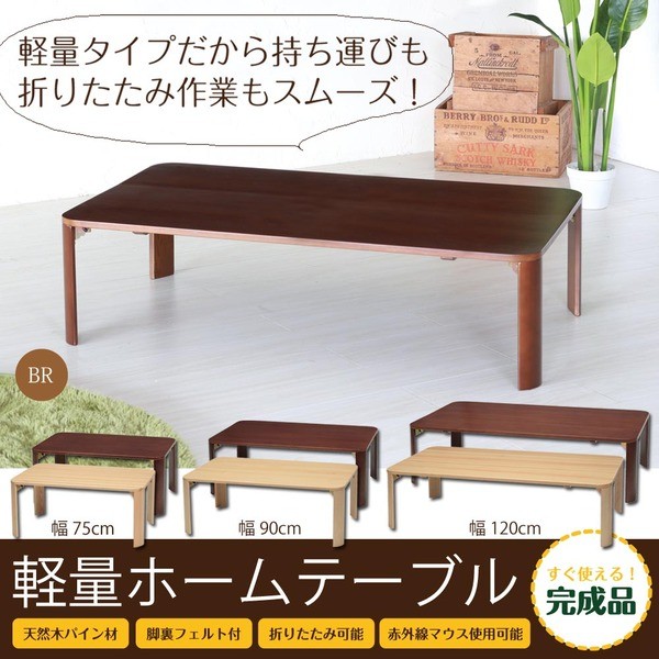 軽量ホームテーブル(折りたたみローテーブル) 木製/木目 幅90cm×奥行60cm ブラウン/完成品/NK-190