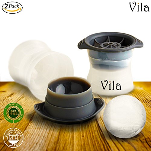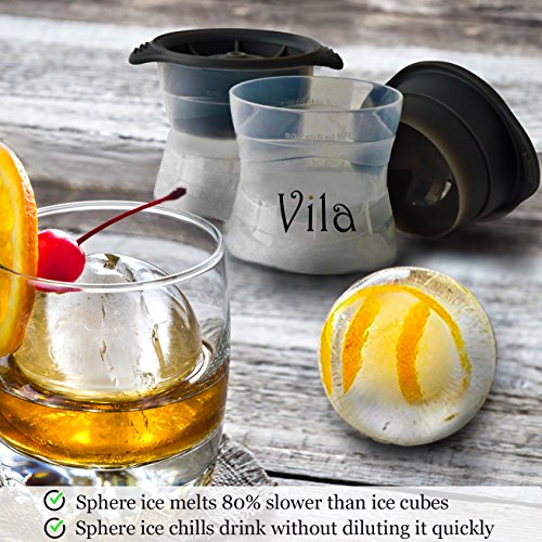 2 Perfect Sphere Ice Molds by Vila – Premium Bar & Party Essential - Compact, No-Spill Storage - Sealed Design results in Fresh & Odorless cubes - Slow Melting Rate - Enjoy Drink a little longer