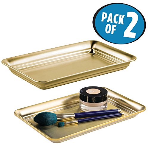 mDesign Vanity Storage Tray for Brushes, Perfume and Cosmetics - Pack of 2, Soft Brass
