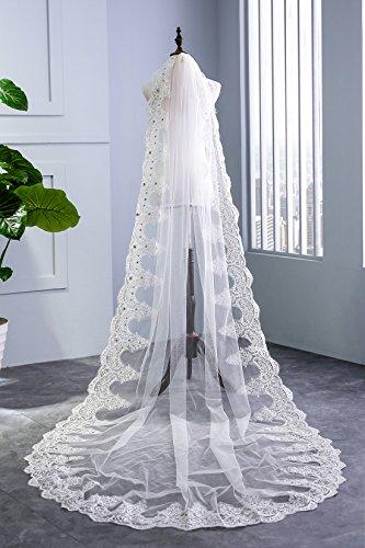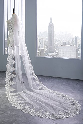 (Wishopping)/Accessories/Scarves/DIRECT FROM USA/Wishopping Women's 1 Tier Lace Long Wedding Bridal Veil With Rhinestone HD13
