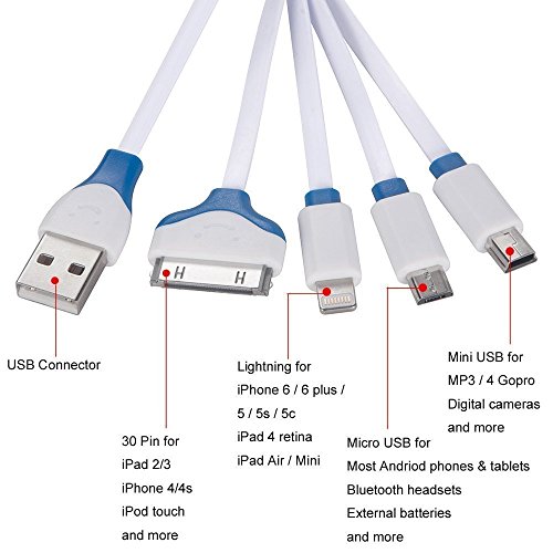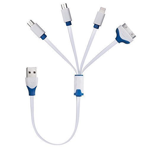 Red Gem 4 in 1 Multiple USB Charging Cable Adapter Connector with 8 Pin Lighting / 30 Pin / Micro USB / Mini USB Ports for iPhone iPad iPod touch Galaxy (Blue) (1-Pack)