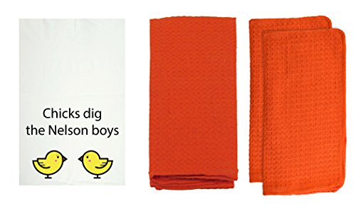 R&R Textile Mills 8 Piece Personalized Chicks Dig Dish Towel Set, Tangerine