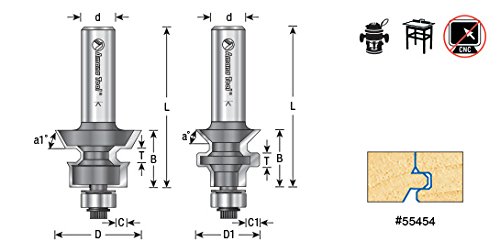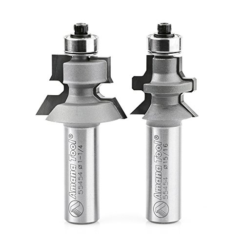 Amana Tool 55454 2-PC Carbide Tipped Flooring 1-1/4 D x 3/4 CH x 1/2 Inch SHK Router Bit Set w/ Nail Slot w/ Lower BB for 1/2 - 5/8 Material