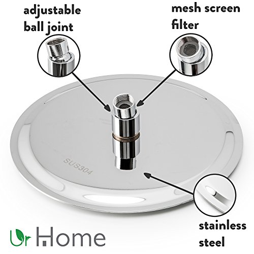 Luxury Rainfall Shower Head By Urhome - 10 Inch Wide For A Spa Like Bathroom - Easy To Install No Tools Required - Eco Friendly High Flow Showerhead - Soothing And Fun