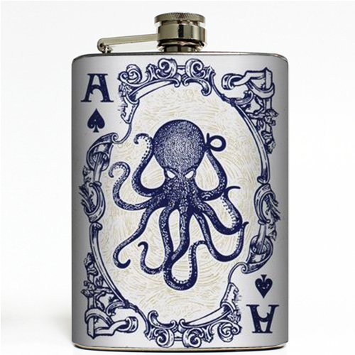 -. Title : Octopus Ace of Spades Vintage Playing Card Stainless Steel 8oz Hip Flask Kraken Whiskey Vodka Flasks