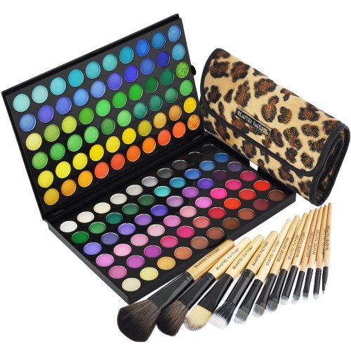 -. Feature : Beauties Factory 120 Color EyeShadow Palette - Color Version #1 (Essentials) / 12 pieces of High Quality Makeup Brushes Set with "African Leopard" Holder Bag / Perfect for both professional use or personal use! / Free Gift: Luvvie Series Eyeshadow Brush x 1
