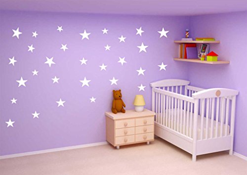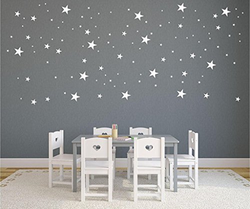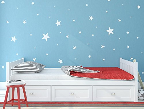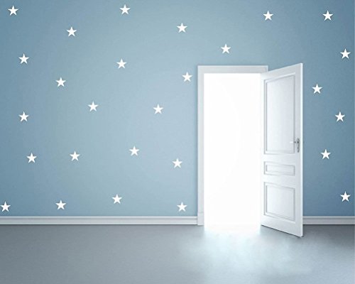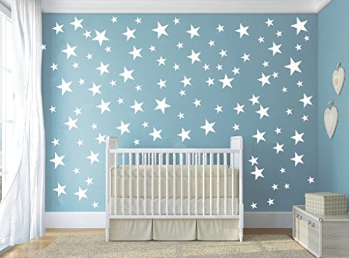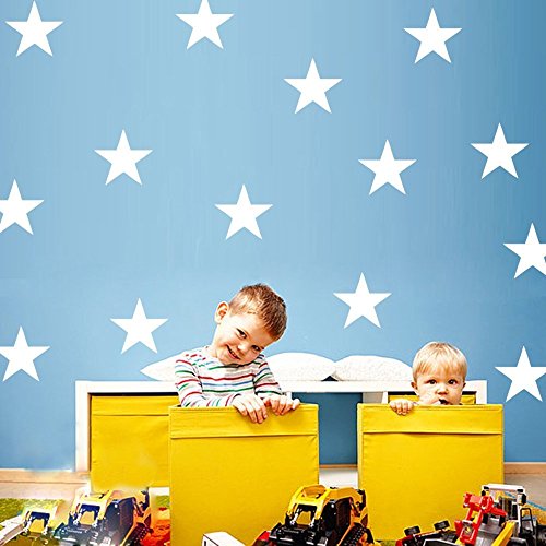 HACASO 90 PCS Mix Size 1.1 to 4.3 Inches Stars Wall Decal Sticker For Kids Bedroom Decor -DIY Home Decor Vinyl Stars Mural Baby Nursery Room Wallpaper(White)