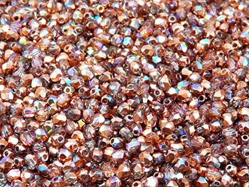 100pcs Czech Fire-polished Faceted Glass Beads Round 3mm Crystal Copper Rainbow