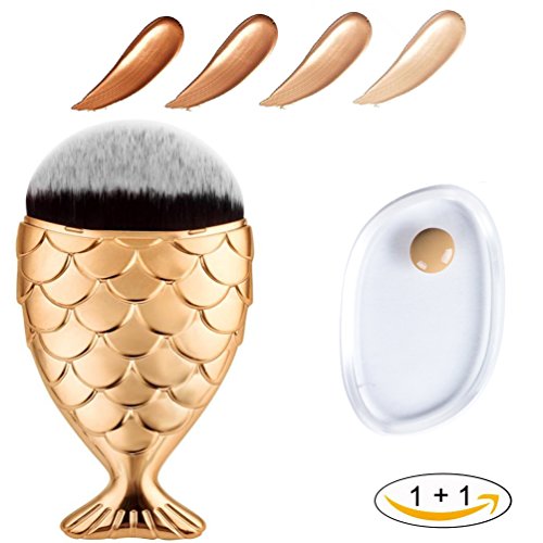 - Uniquely designed to apply powder, cream and liquid products.Package:1pcs Fishtail Bottom Makeup Brush Fish Scale Make up Brush Powder Blush Foundation Cosmetic Brushes Tool And 1pcs Silicone Makeup Sponge