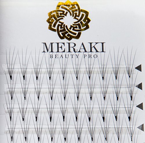 Meraki Beauty Pre Fanned Russian Volume Eyelash Extension Trays have been manufactured with the finest consistency and precision to add speed and instant dimension to volume lashing. Multiple lengths are positioned side by side on the strip so each fan has a variety of lengths