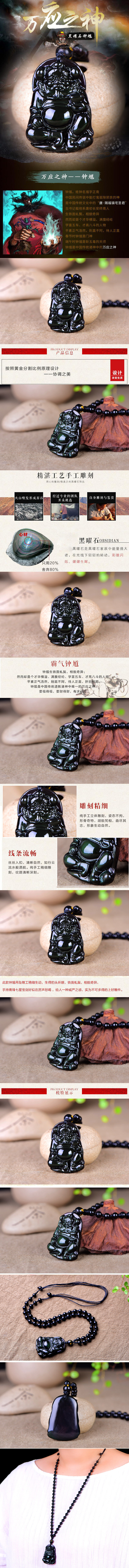 开光精雕天师钟馗男女士护身符天然黑曜石钟馗吊坠项链挂坠链礼物