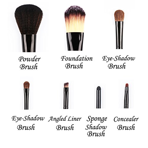 Diolee Makeup Brushes 7 Pcs Professional Kabuki Foundation Powder Angled Eyeshadow Brush Set With Travel Case (Black)