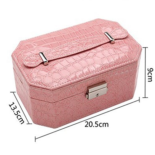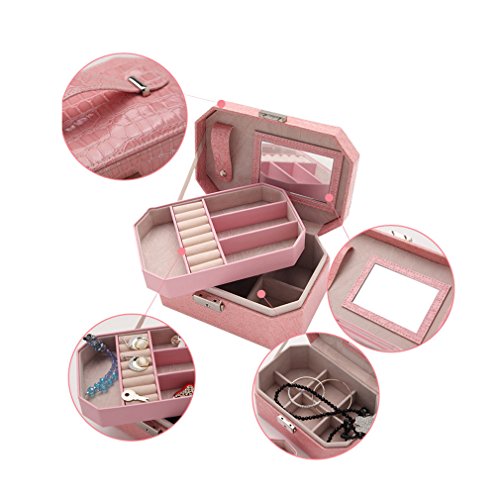 KUKI SHOP Synthetic Leather 2-Layer Large Capacity Portable Jewelry Storage Organizer Box Case ...
