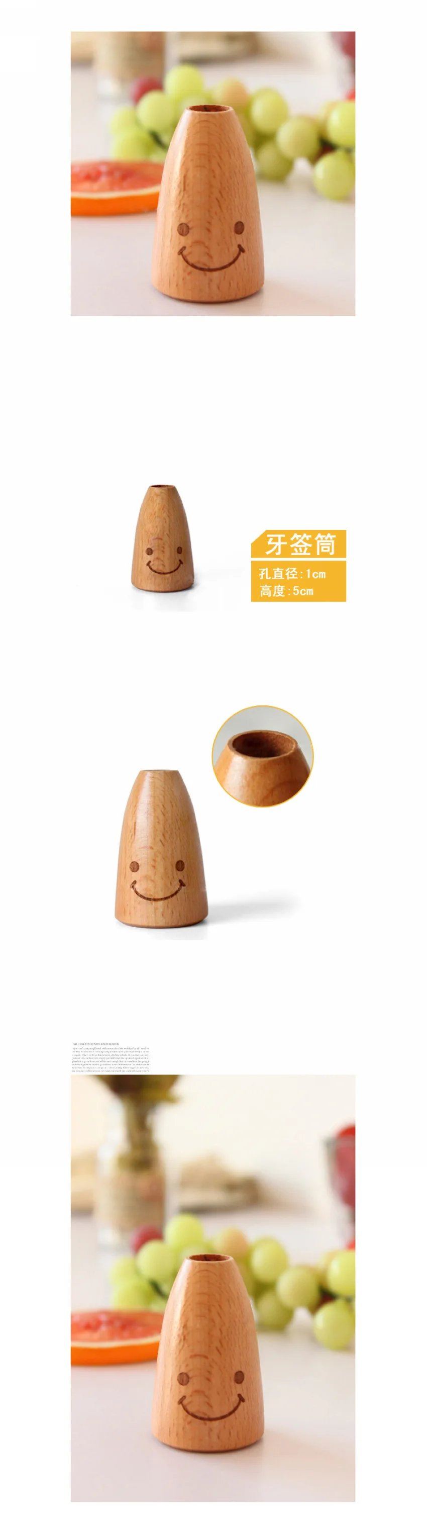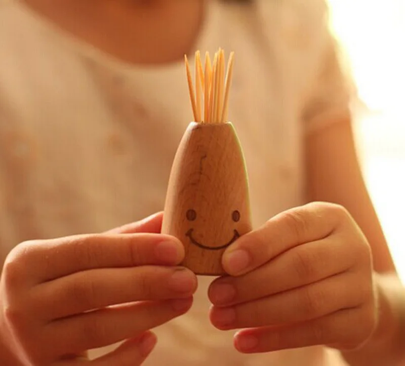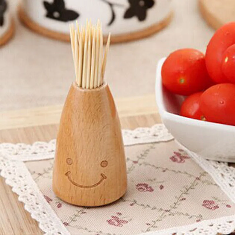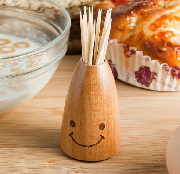 Creative Wooden Smiley Face Wooden Toothpick Holder Home Dining Table Decor