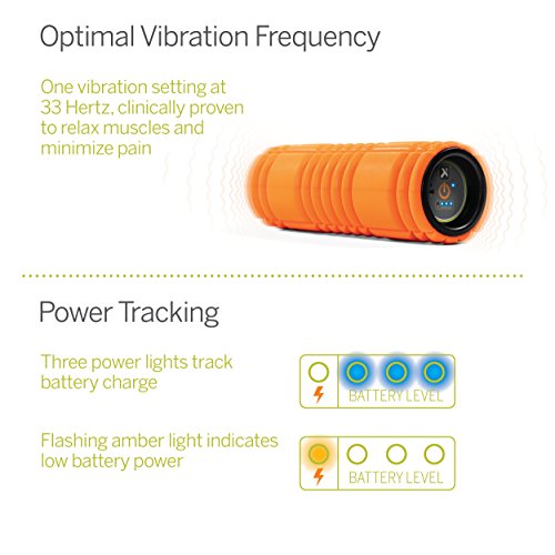 Studio : TriggerPoint Publisher : TriggerPoint Binding : Sports Product Description The Trigger Point GRID VIBE Vibrating Foam Roller for Pain Relief, Relaxation and Recovery is a cordless, rechargeable vibrating high-density EVA foam roller that provides clinical therapy technology in a compact, portable, personal unit. Specifically calibrated to vibrate at one wavelength that is optimum for relief, the 33 Hertz vibration minimizes discomfort, offering a soothing blend of pressure and vibration to release tight tissue. Long-term benefits of foam rolling therapy include pain reduction and faster muscle recovery. The durable high-density signature GRID surface pattern patented by Trigger Point features a variety of widths and textures to replicate the sensation of a massage therapist’s hands. Compact at 12 inches long, with a 3.5-inch diameter, and weight of 2.15 pounds, the GRID VIBE delivers quiet, targeted, deep tissue relief. Designed to fit inside the original Trigger Point GRID Foam Roller to reduce intensity and increase surface area for a milder foam rolling experience. The Trigger Point GRID VIBE Vibrating Foam Roller includes an AC charger; the unit’s built-in lithium ion battery can be fully charged in three hours, and holds two hours of foam rolling power when fully charged. Owner’s manual features instructions for use, exercise examples and an access code for exclusive online video instruction. One-year limited manufacturer’s warranty. 0
